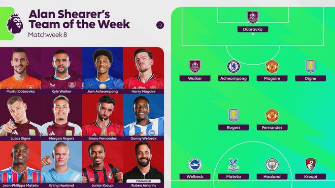 阿兰·希勒评英超第8轮最佳阵:哈兰德领衔,马奎尔入选