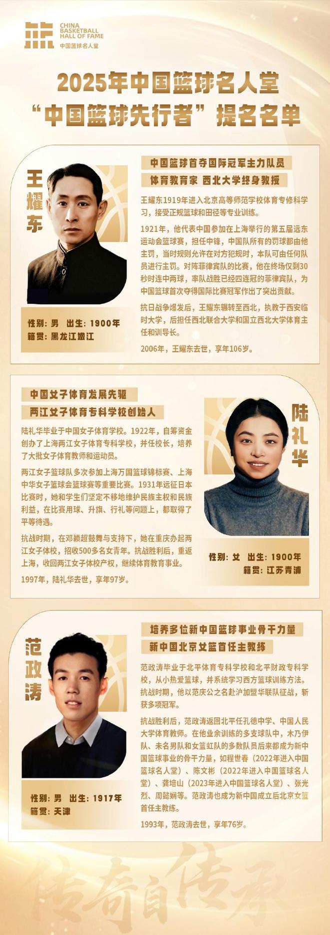 10月16日,中国篮球协会公布了2025年中国篮球名人堂推举名单。